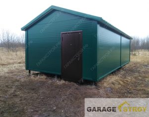 Гараж из сэндвич-панелей размером 6*5,5м с двускатной кровлей на ленточном фундаменте. Тульская область, Воловский район, д. Сухие плоты, трасса М4-Дон.