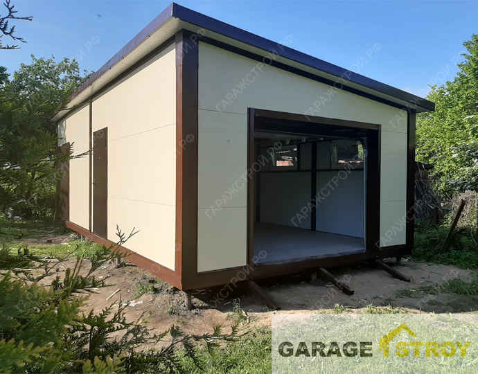 Гараж из сэндвич-панелей 6х4м с односкатной кровлей под ключ Гараж из сэндвич-панелей 6х4м с односкатной кровлей на свайном фундаменте. Комплектация:...