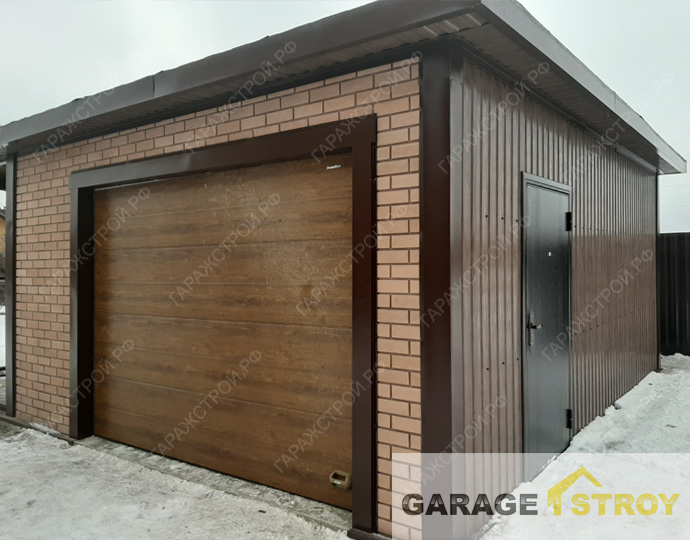 Наша работа — Гараж из сборных сэндвич-панелей Гараж из сборных сэндвич-панелей с отделкой под кирпич 6х3м + навес 6х8м Комплектация:...