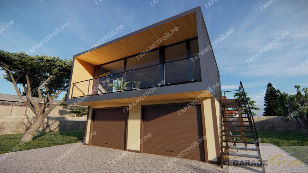 Двухэтажный гараж из сэндвич панелей на 2 машины