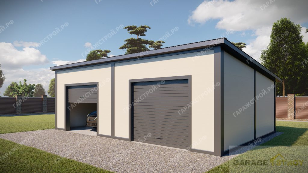 Гараж из сэндвич панелей на 2 авто размером 6х9м с односкатной кровлей назад: Качество и Надежность от ГаражСтрой