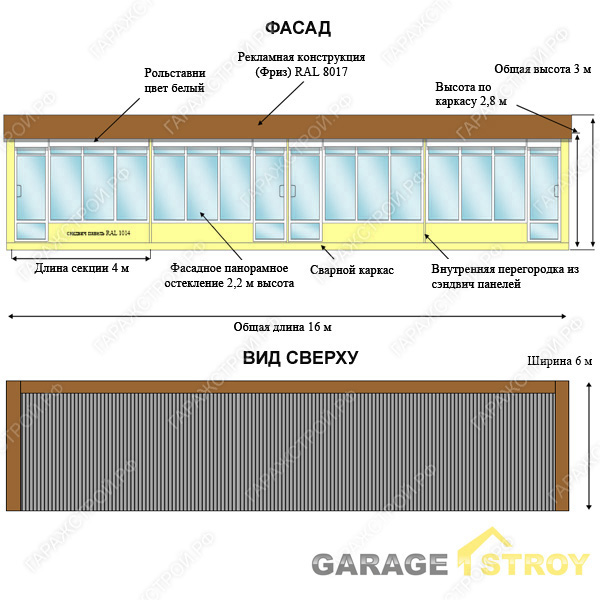 Торговый ряд из 4 павильонов, 16 на 6м.: Качество и Надежность от ГаражСтрой